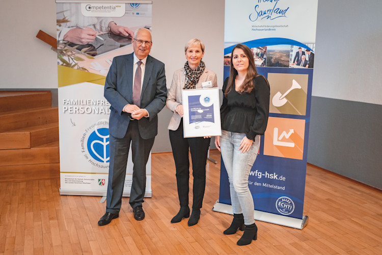 In einer feierlichen Zeremonie haben wir in der letzten Woche wieder das Zertifikat als familienfreundliches Unternehmen im Hochsauerlandkreis bekommen. Ausgehändigt hat es Landrat Dr. Schneider persönlich.